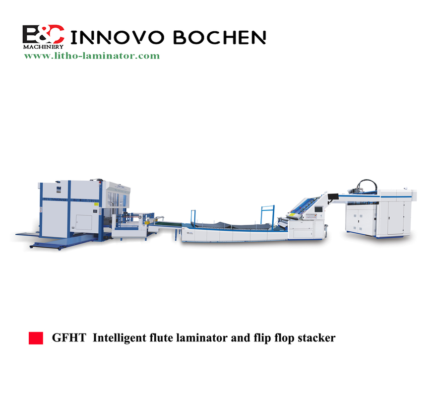 GFH is the latest generation of high-speed automatic flute laminating machine developed by our company. The top paper of this machine adopts overlap feeding the principle of offset printer, and the top paper side gauge adopts the motion side gauge and the servo paper surface tracking and correction principle. And bottom paper use two lead edge system, no pressing rollers, use high flow suction to feed the paper, no pressure on paper. It can do best to keep the board original type. It can automatically detect the height of the corrugated paper, automatically adjust the gap between the rollers, automatically adjust the amount of glue, and the laminating roller does not need to be scrubbed. The maximum laminating speed can reach 200 meters/minute (24,000 sheets/hour). High speed, high efficiency and high precision are your ideal choice.